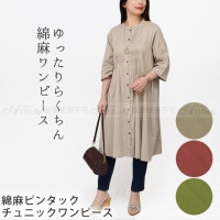レディースファッション > アウター > 即納★【他の商品と一緒に購入で送料無料】【X200】【レディースファッション】 綿麻ピンタックチュニックワンピース 80279
