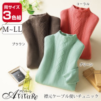 【70260】【レディースファッション】襟元ケーブル使いチュニック3色組