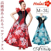 新商品 > フラダンス新商品 > 即納★【3797】【フラダンス】 ベロア切替オーガンジー袖ドレス OP369-4 OP369-5