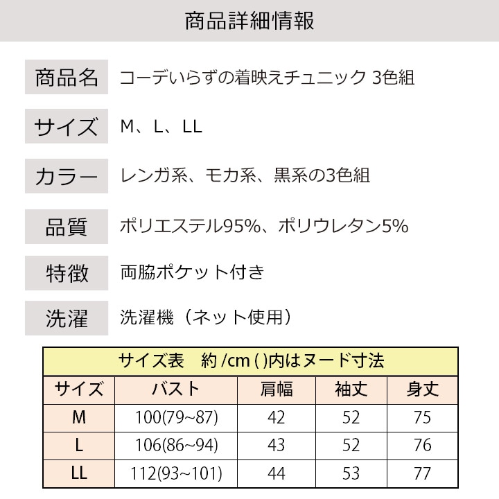 カタログ掲載商品 > C177 > 【70325】コーデいらずの着映えチュニック3色組