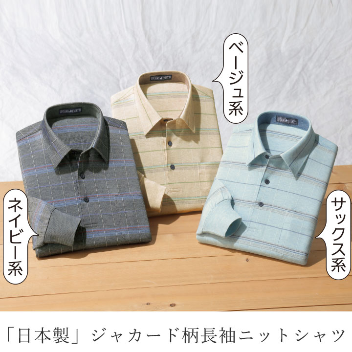 カタログ掲載商品 > DC114 > 即納★【特価】【70311】【メンズ】「日本製」ジャカード柄長袖ニットシャツ
