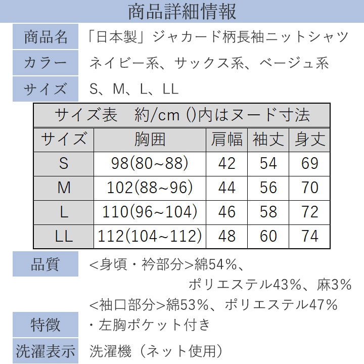 即納★【特価】【70311】【メンズ】「日本製」ジャカード柄長袖ニットシャツ