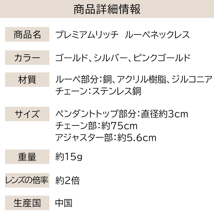 トップ > 新商品 > 雑貨新商品 > 【Z3364】プレミアムリッチ ルーペネックレス 雑貨・ビューティー > 便利グッズ > ファッション > 【Z3364】プレミアムリッチ ルーペネックレス アクセサリー・小物 > アクセサリー > ネックレス > 【Z3364】プレミアムリッチ ルーペネックレス カタログ掲載商品 > Y109 > 【Z3364】プレミアムリッチ ルーペネックレス