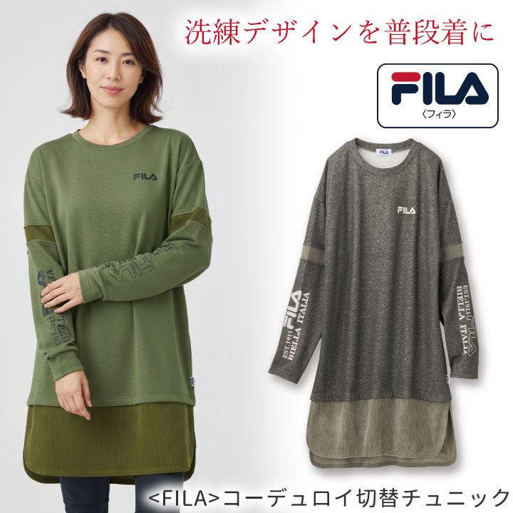 即納★【在庫限り】【70356】【レディースファッション】FILA裏起毛コーデュロイ切替チュニック 961509