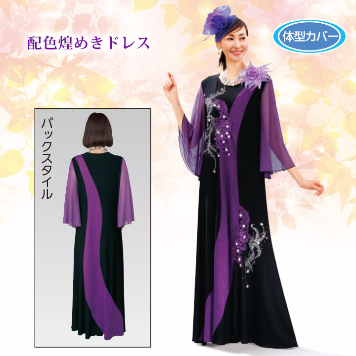 配色煌めきドレス 黒×パープル系 |