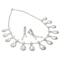 | フォーマル/衣装/ステージ/舞台/イベント/ライブ/発表会/パーティ/ネックレス/イヤリング/アクセサリーセット/シルバー/パール |