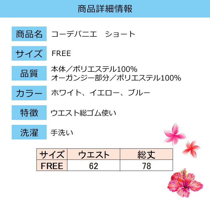 トップ > フラダンス > パニエ > 【6041】【フラダンス衣装】コーデパニエ ショート YJA-0303【キャンペーン対象外商品】