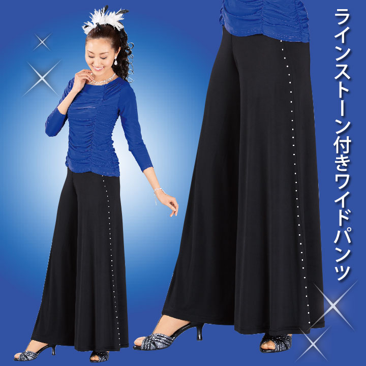ラインストーン付ワイドパンツ |