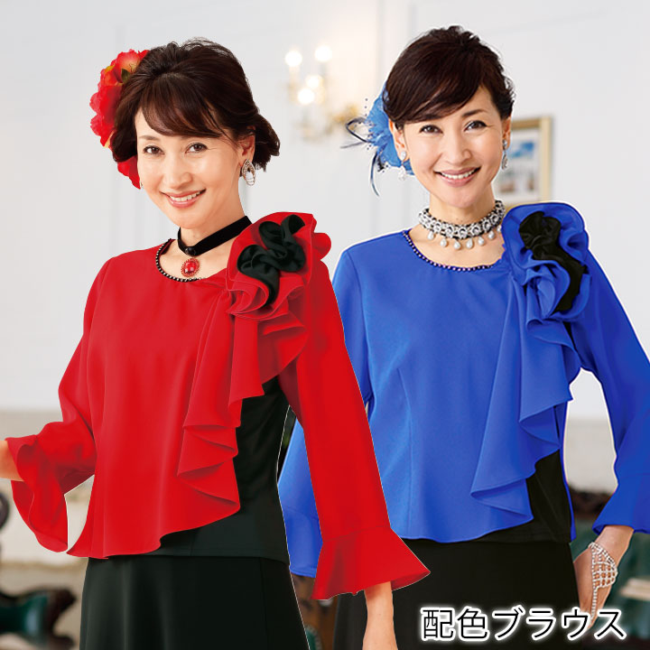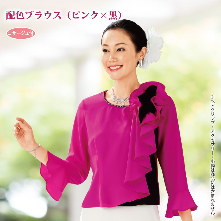 黒と鮮やかなカラーのコントラストが印象的なカラーブラウス。