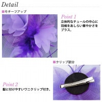 フラワーモチーフと羽根を合わせて存在感のあるデザイン。