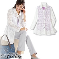 フラワーモチーフの総レースが上品なブラウスジャケット。