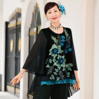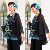 ふんわり軽いシフォン生地を袖と後ろ裾に使用し、ゆったり