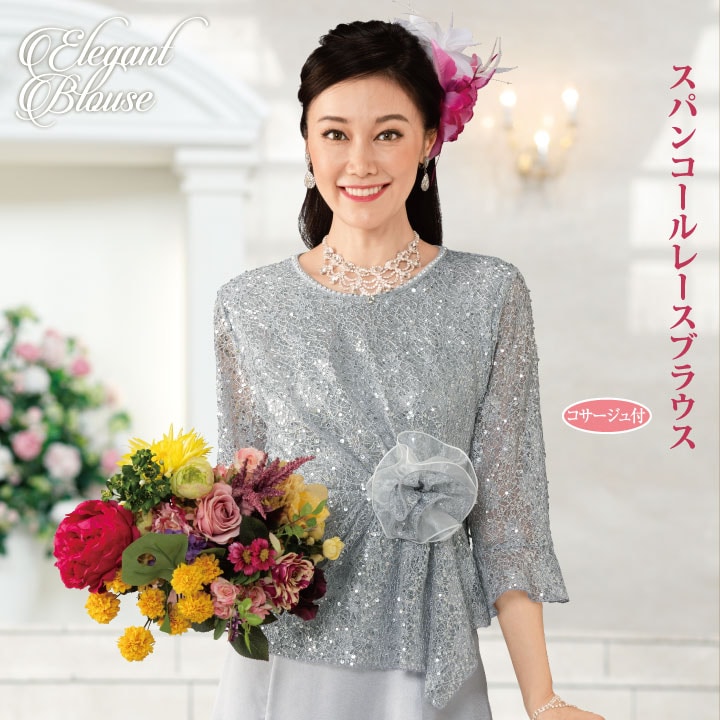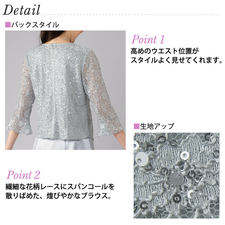 上品なレース地にスパンコールを丁寧に縫い付けたブラウス
