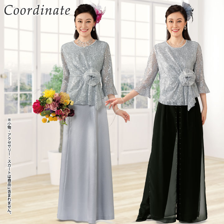 シルエットを美しくみせ、コサージュで華やかさをプラスします。 |