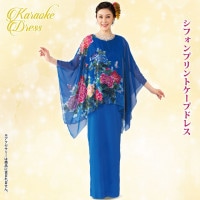シフォンプリントケープドレス |
