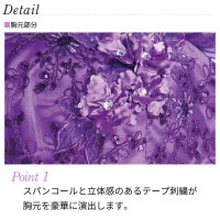 スパコールと立体感のあるテープ刺繍が胸元を豪華に演出します。