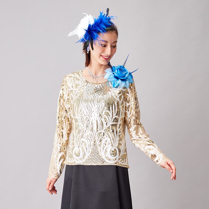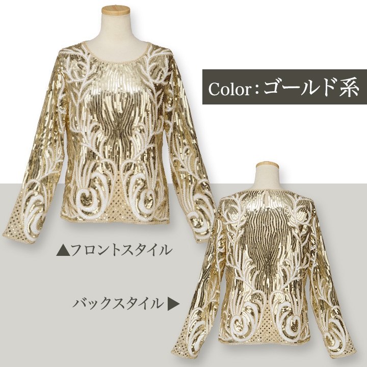 トップ > カラオケ・和柄 > トップス > 即納★【3807】スパンコールビーズ刺繍プルオーバー CN-TSS001