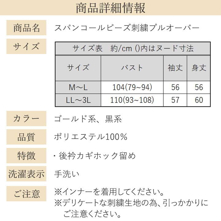 新商品 > カラオケ・和柄新商品 > 即納★【3807】スパンコールビーズ刺繍プルオーバー CN-TSS001