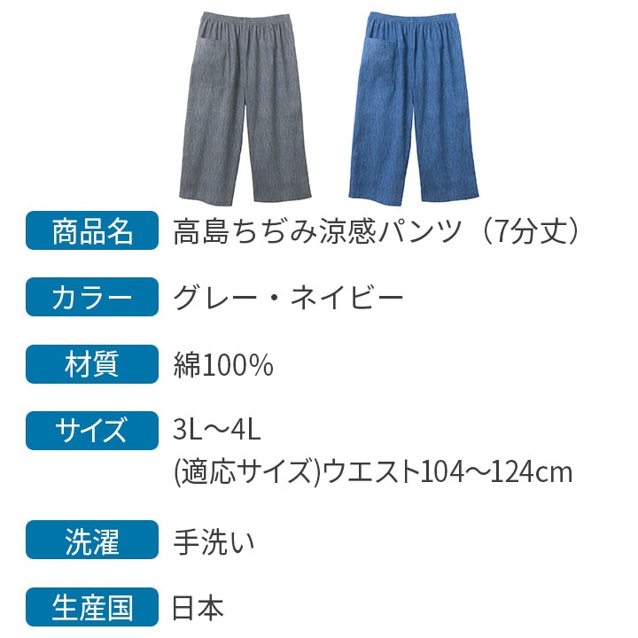 トップ > メンズ > ファッション > 【Z3259】高島ちぢみ涼感パンツ(7分丈) 3L-4L 期間限定特集 > 季節商品 > 春夏 > 【Z3259】高島ちぢみ涼感パンツ(7分丈) 3L-4L