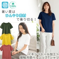 【会員特別価格】【70291】【レディースファッション】<キシリトール加工> 接触冷感ベーシックTシャツ