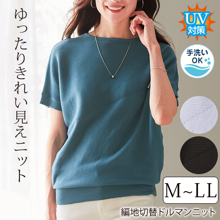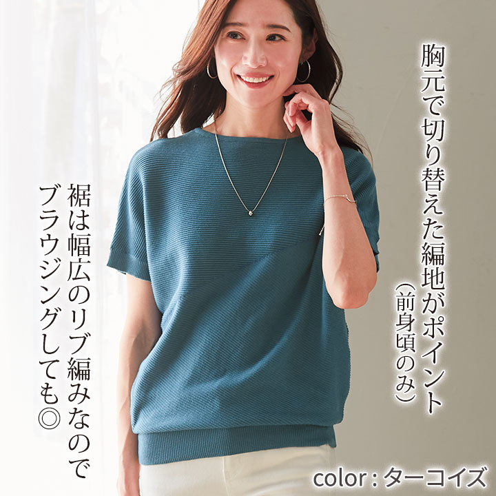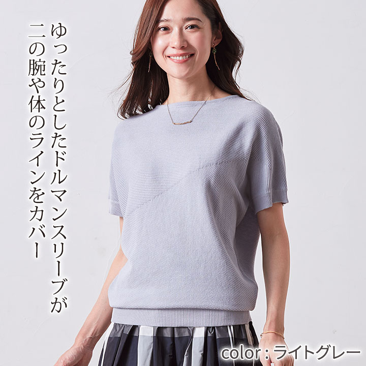 レディースファッション > トップス > 半袖 > 【会員特別価格】【70297】編地切替ドルマンニット