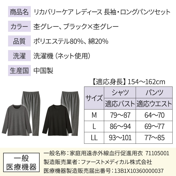 カタログ掲載商品 > L08 > 【送料無料】【Z3328】リカバリーケア レディース 長袖・ロングパンツセット