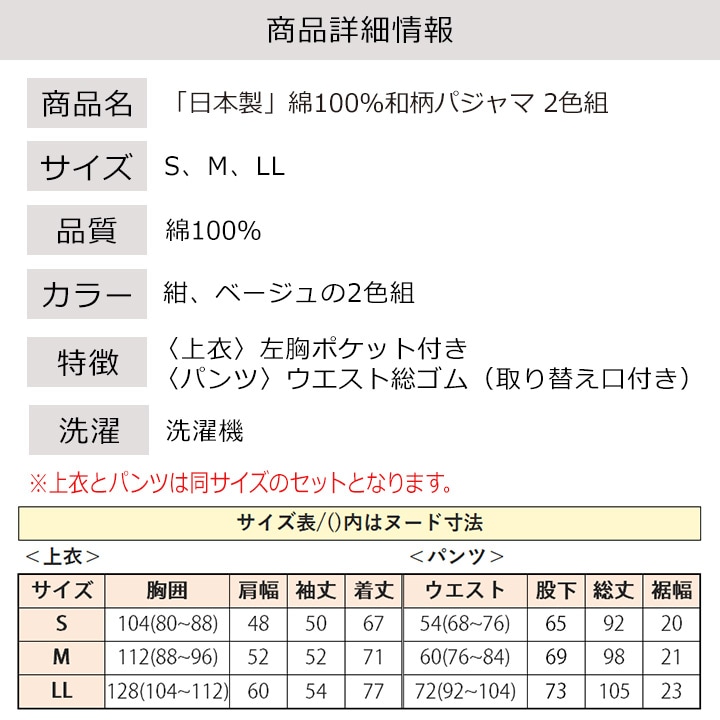 トップ > メンズ > インナー・パジャマ > 即納★【特価】【70309】「日本製」綿100%和柄パジャマ2色組