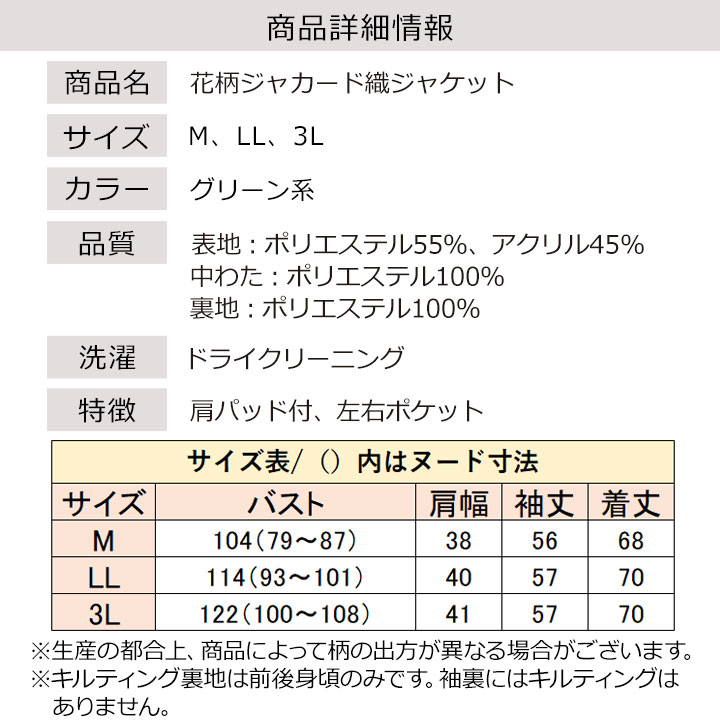 即納★【在庫限り】【70344】 花柄ジャカード織ジャケット 961141
