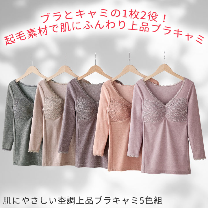 レディースファッション > インナー > カップ付きインナー > 即納★【在庫限り】【70328】【レディースインナー】 肌にやさしい杢調上品ブラキャミ5色組 441569