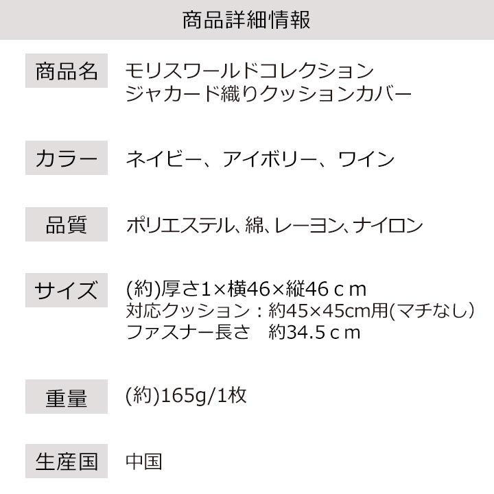 トップ > 雑貨・ビューティー > インテリア・家電 > 【Z3377】モリスワールドコレクション ジャカード織り クッションカバー 新商品 > 雑貨新商品 > 【Z3377】モリスワールドコレクション ジャカード織り クッションカバー