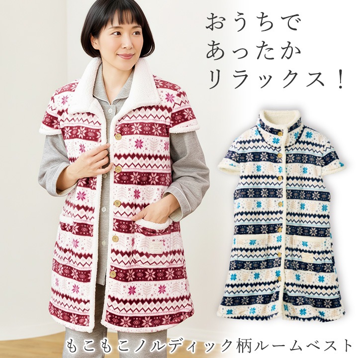 即納★【3/26まで期間限定セール】 【在庫限り】【70364】 もこもこノルディック柄 ルームベスト 961700