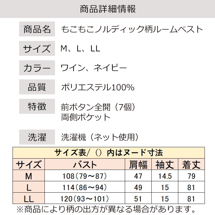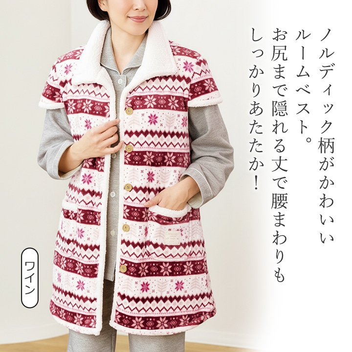 レディースファッション > パジャマ・部屋着 > 即納★【3/26まで期間限定セール】 【在庫限り】【70364】 もこもこノルディック柄 ルームベスト 961700