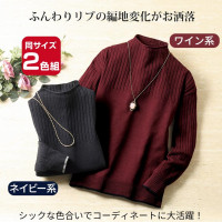 即納★ 【在庫限り】【70347】編地変化がお洒落なニット 2色組 961315