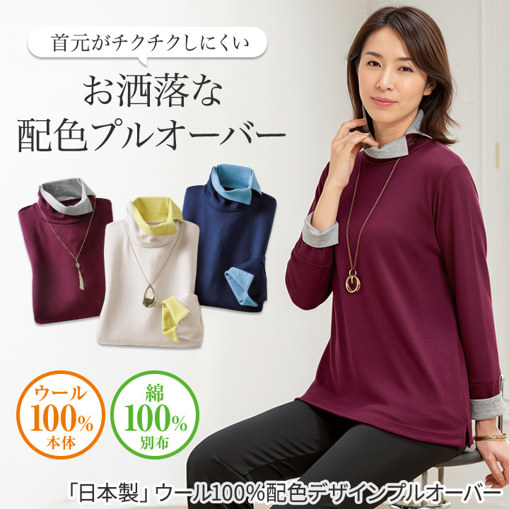 即納★【3/26まで期間限定セール】 【在庫限り】【70358】「日本製」ウール100%配色のお洒落なプルオーバー 960977