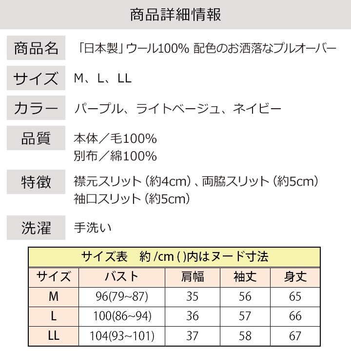 トップ > レディースファッション > トップス > 長袖 > 即納★【3/26まで期間限定セール】 【在庫限り】【70358】「日本製」ウール100%配色のお洒落なプルオーバー 960977